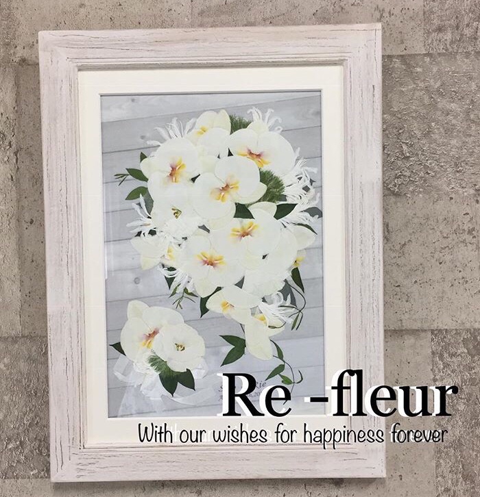 ブーケを叔母さまが手作りされてリフルールが押し花のお手伝いをさせていただきました。