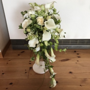 O様のブーケは流れるようなフォルムが素敵なキャスケードブーケだったので、