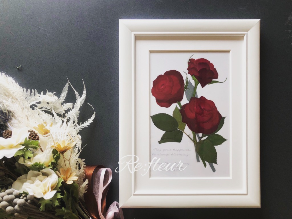 3輪バラ 結婚記念日の押し花